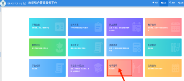 1.登录系统后,点击【主控】——【电子证明】模块。
